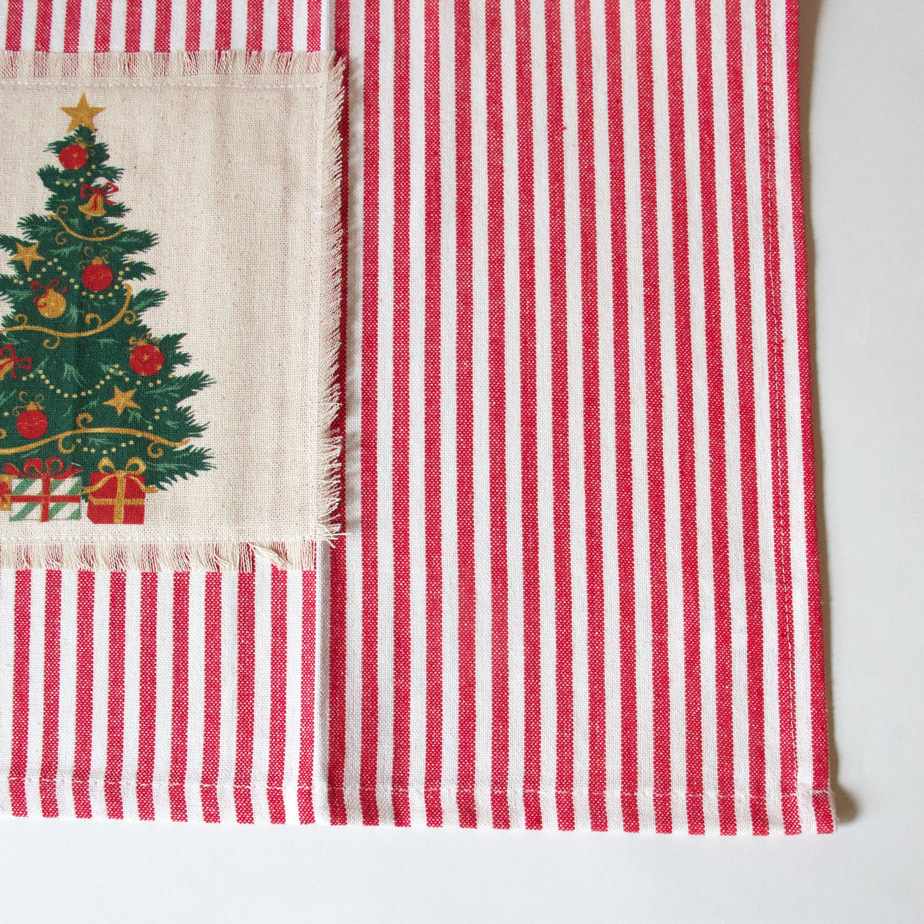 Add a touch of holiday cheer to your kitchen with this tea towel. With a red and white stripe pattern and Christmas tree patch, she's classic and cute.